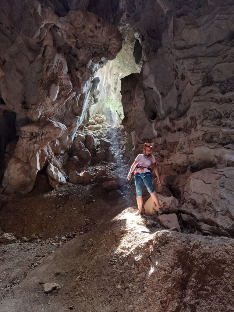 So, inkl. 6a alles bezwungen, die Hände lahm, machen wir uns auf die Suche nach einem kleinen Wasserfall, den es laut Karte in der Nähe geben soll. Ein Typ mit Kind auf dem Moped hält neben uns und will den verlaufenen Ausländern helfen.
