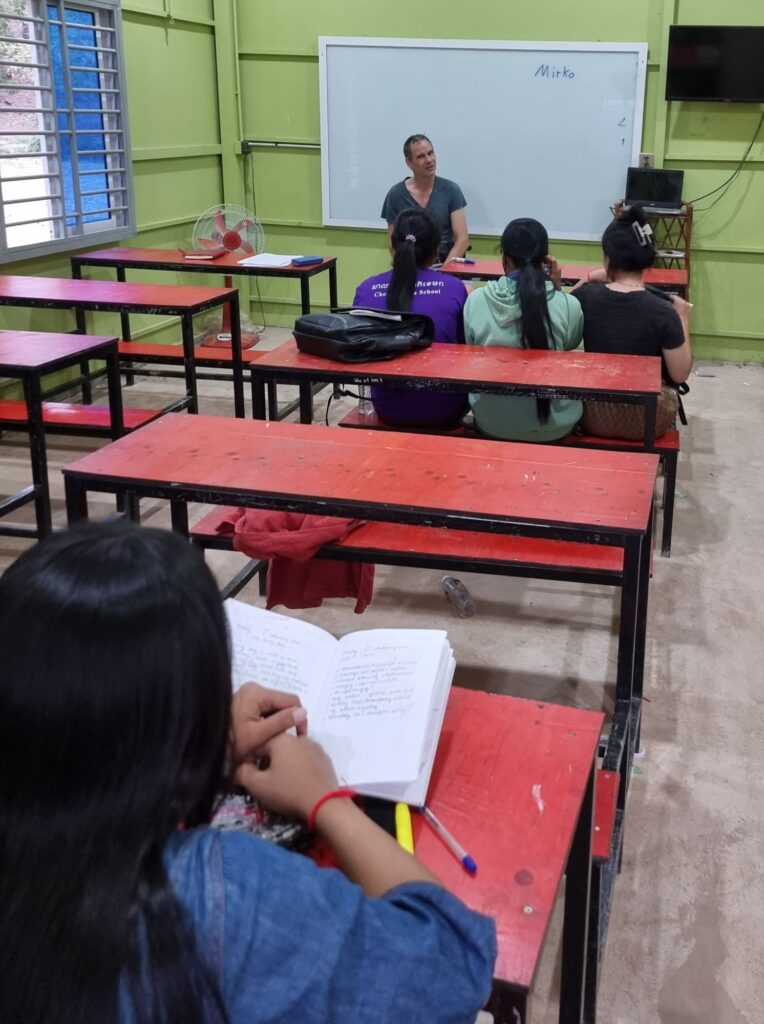 Am Ende landen wir doch noch in der Schule und treffen auf sehr schüchterne Kinder, die sich nur vereinzelt trauen, etwas zu sagen. Angelas Englischunterricht mit den Jüngeren ist erfolgreicher, sie kennt jetzt von allen Lieblingsfarben und Geschwisterzahlen, die Englischlehrerin konnte auch nicht mehr als die Schüler. Bei mir hat der Direktor fleißig übersetzt…
