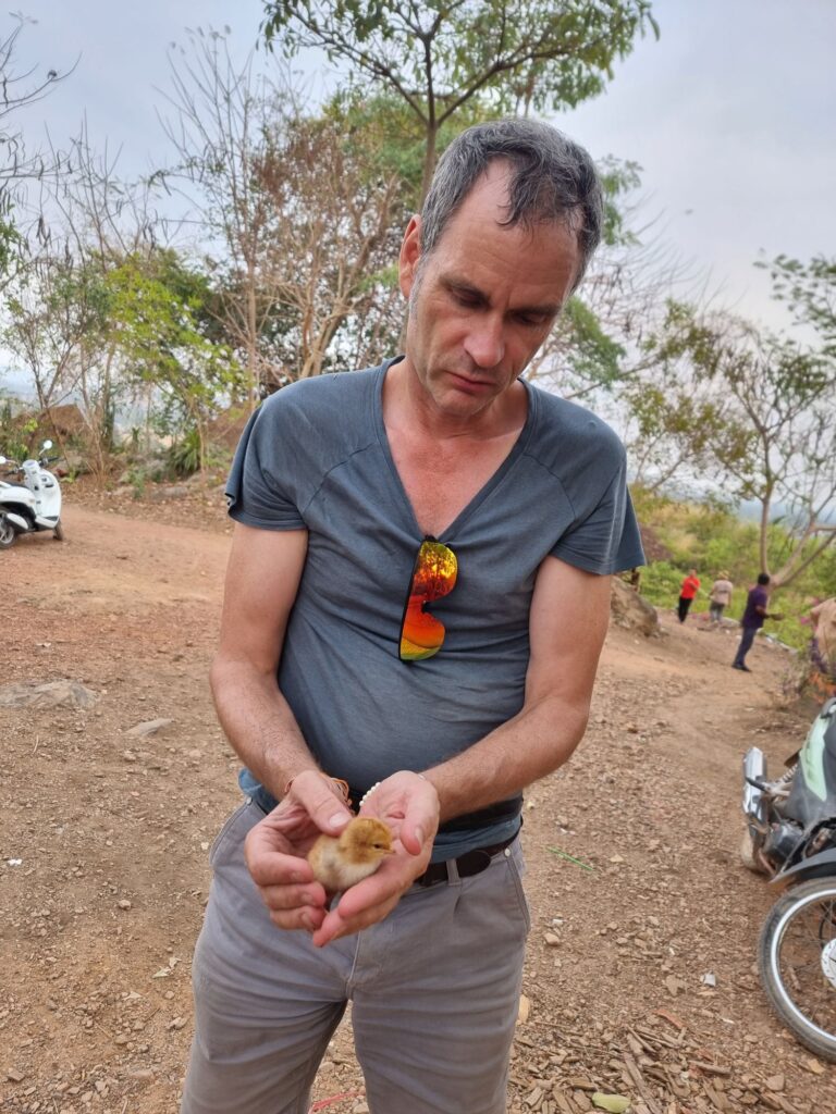 Was nun? Die Mitarbeiter wissen auch nicht weiter, aufs Moped geht auch nicht. Sind Vögel nicht zufällig solidarisch? Pfaue haben doch auch Küken, können die nicht mal kurz aufpassen? … Sie können. Und wie. Sind sehr schnell bei der Sache. Finden das Küken süß, lecker sogar. Streiten sich noch drum! Das Fiepsen ist schnell vorbei, eine Daune sinkt einsam zur Erde…erschüttert und mit offenem Mund beobachte ich das Geschehen, bis mich Angela wegzieht. Als was wird der Kleine wohl wiedergeboren? Das mit Huhn hat nicht so geklappt. Gute Reise, kleiner Fieps!