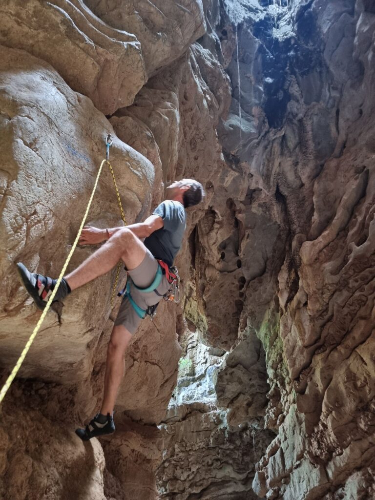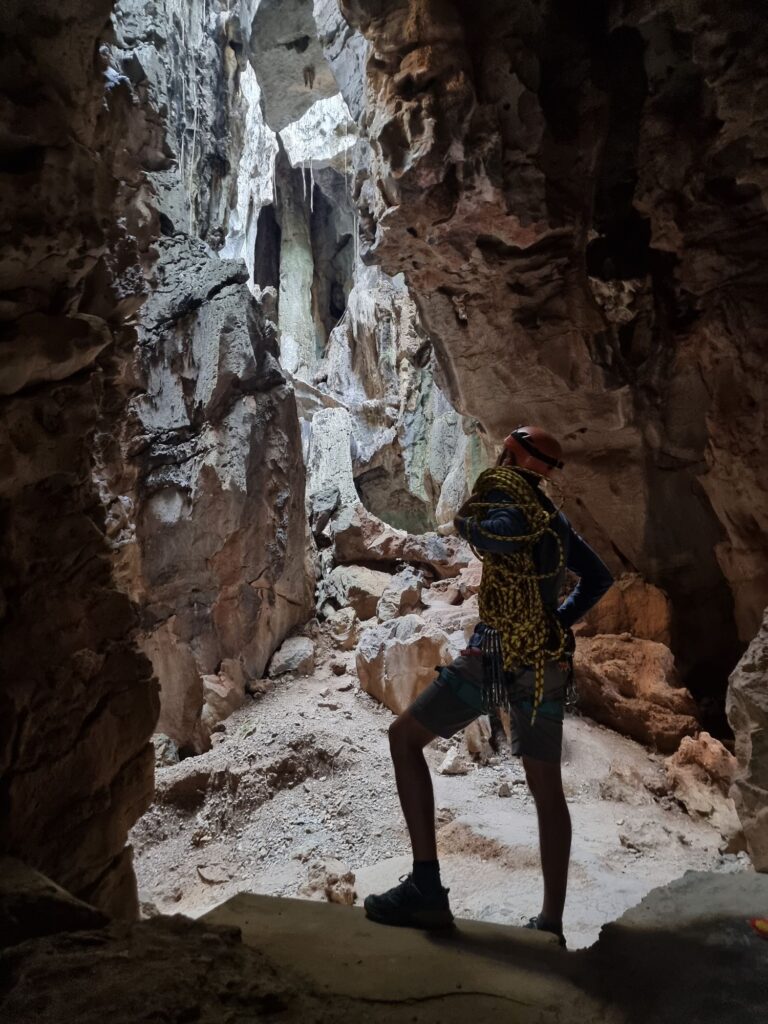 Sie geben uns aber auch Material und wir können ein paar sehr schöne Strukturen und Linien ausprobieren. Eine besondere Idee: ein Sektor innerhalb der Höhle, z.T. mit Stirnlampe!