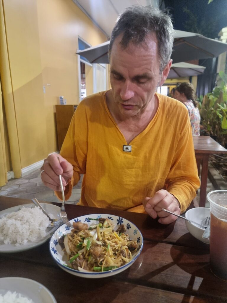 Heute abend soll es mal etwas besonders zu essen geben, ne Spinne oder so. Leider haben viele Restaurants über Covid aufgegeben und alte Empfehlungen stimmen nicht mehr. Ein TukTuk Fahrer weiß aber Rat und wir vertrauen ihm ausnahmsweise. Die hatten aber auch das Sortiment gelichtet und so gab es an ungewöhnlicher Küche nur gebratene Frösche- ohne Beine! Dafür war alles sehr lecker zubereitet, keine Frage.