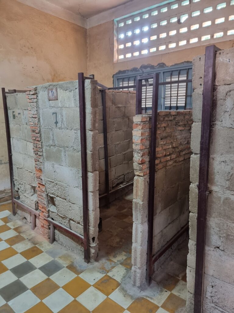 Nach der Befreiung durch die Vietnamesen hat die lokale Bevölkerung die Bauten und Tötungswerkzeuge geplündert, so dass im Prinzip nur Bilder, Geschichten und Knochen übrig sind. Anders im Folterzentrum S-21, wo alles so geblieben ist- bis zu den Blutspuren auf dem Boden! Sehr verstörend, wozu Menschen fähig waren und sind…