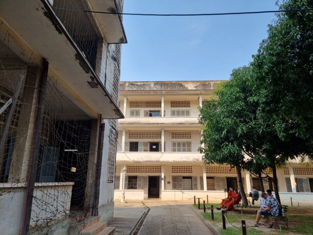 S-21 wurde in einer Schule eingerichtet, ein damals typisches Gebäude. Am nächsten Morgen schaue ich vom Dach-Pool zufällig in Richtung einer nahen Schule und entdecke…genau so ein Gebäude, selbe Farbe, selber Zustand…!
