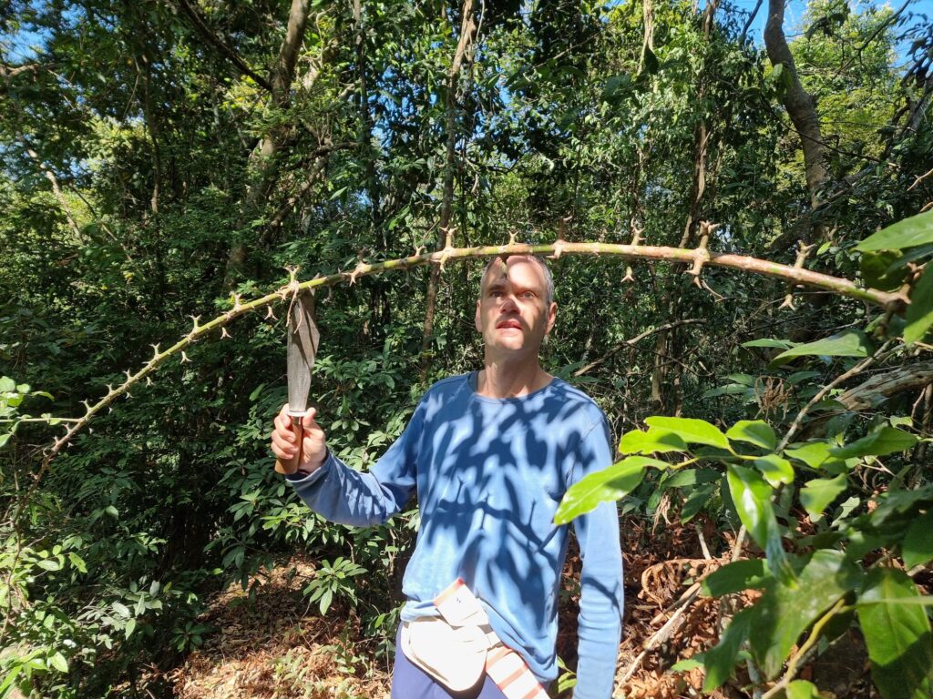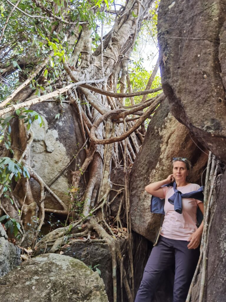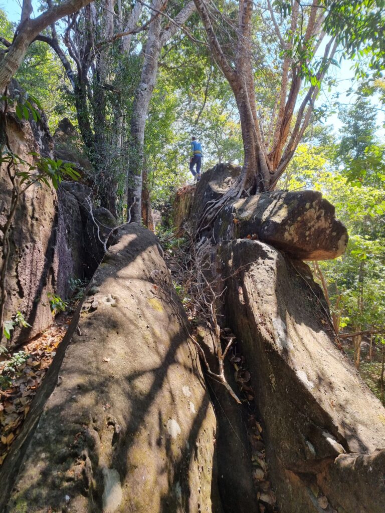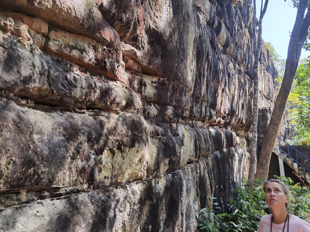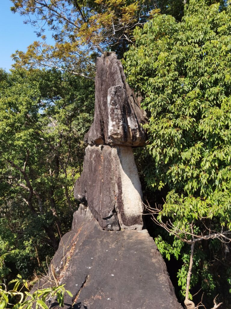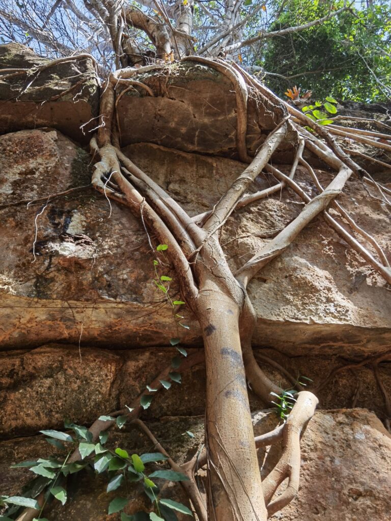 In geringer Entfernung von hier gibt’s einige nette Ecken, die einen Besuch lohnen. Zuerst die “giant wall”, eine kilometerlange Sandsteinwand, an manchen Stellen bis zu 15m hoch und dort oben weniger als 1m breit. Sieht aus, wie von Riesen erschaffen, weil sich so Blöcke herausgebildet haben. Irgendwie unglaublich, zumal es weit und breit nur Kalkfelsen gibt! Bis auf ein paar Katholiken, die hier ihre Maria untergebracht haben, interessiert sich aber niemand dafür, so dass fast alles zugewuchert ist- ein Einsatz für meine Machete, die der Aufgabe allerdings nicht gewachsen war. Der Griff spaltete sich, als ich die lockere Klinge mit einem Span befestigen wollte- so ein Mist!