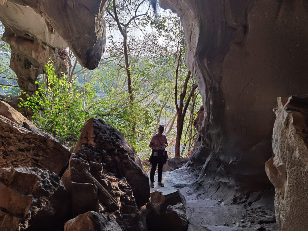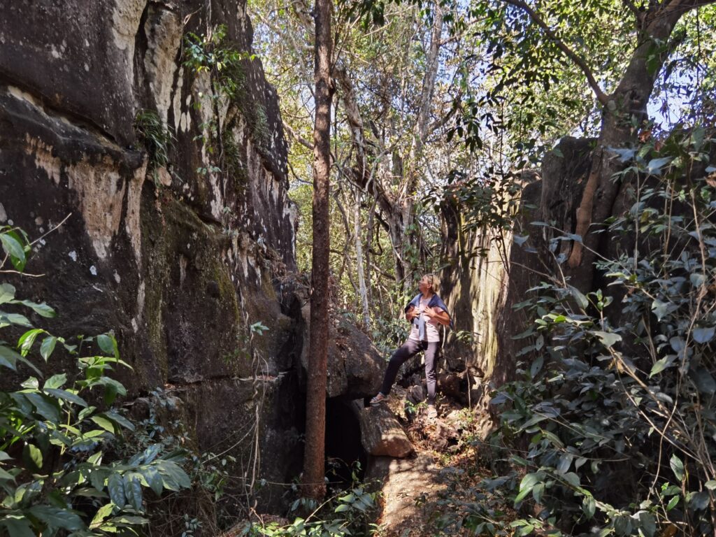 Es wird spät, wir wollen vor der Dämmerung zurück sein. Es passt nur noch die Elefantenhöhle ins Programm. Das Routing schickt das kleine Motorrad abenteuerliche Sandwege lang, oft schmaler als der Lenker- aber wir kommen durch! Wir sind die letzten Gäste und die Frauen vom Dorf schieben hinter uns das Tor zu.