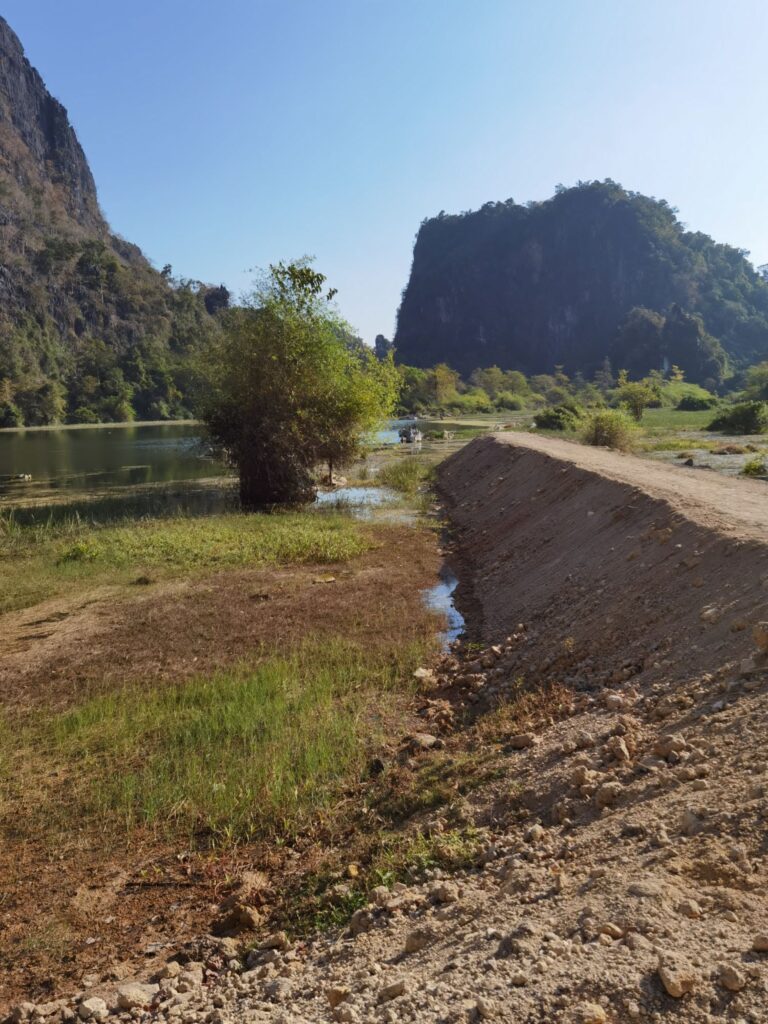 Genug gestaunt, weiter zu einem aufgegebenem Projekt der Franzosen, den Mekong per Eisenbahn mit der Küste von Vietnam zu verbinden. Etwas Damm und eine Betonbrücke war fertig, dann kam die Weltwirtschaftskrise.