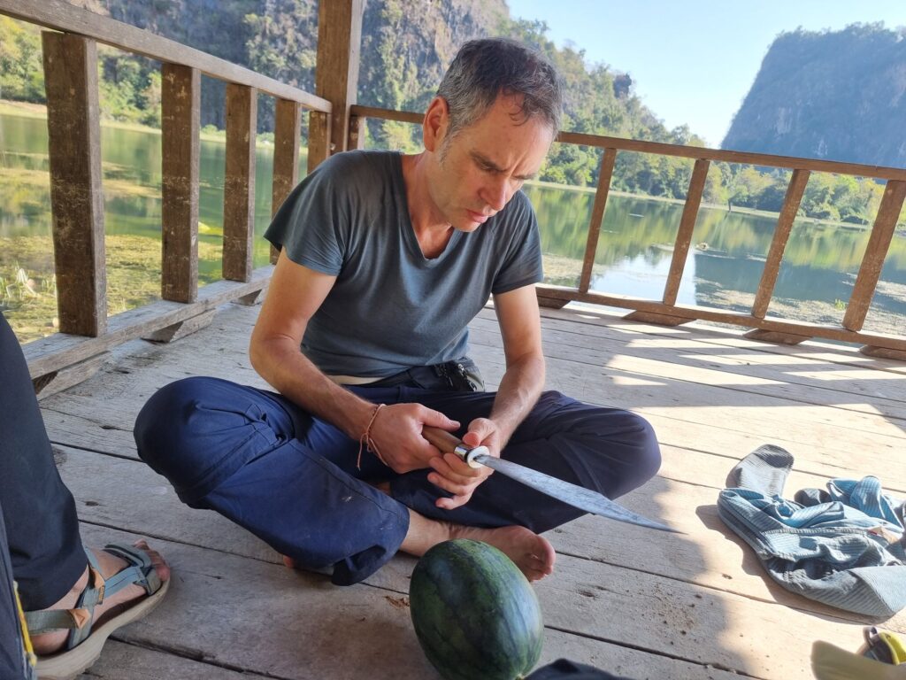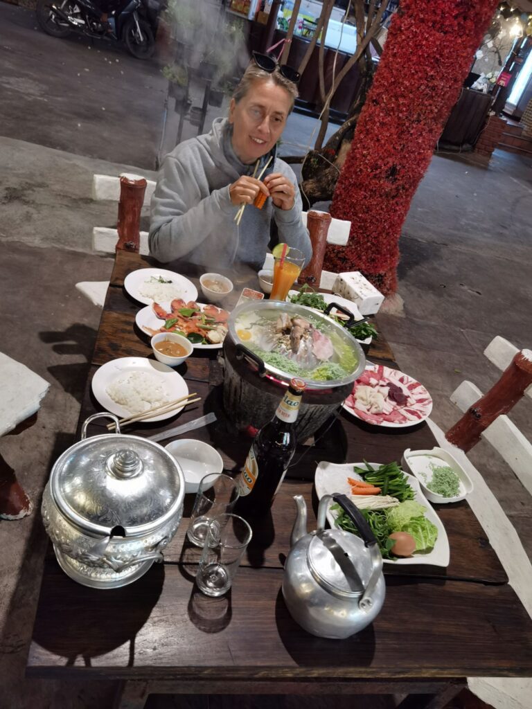 ..muss sein, Angela hat sich gut verausgabt! Also beginnen wir den Tag mit der weiteren Planung und der Organisation der Busfahrt nach Pakse- leider ist der Fährbetrieb auf dem Mekong zum Erliegen gekommen, meine Lieblingsvariante.