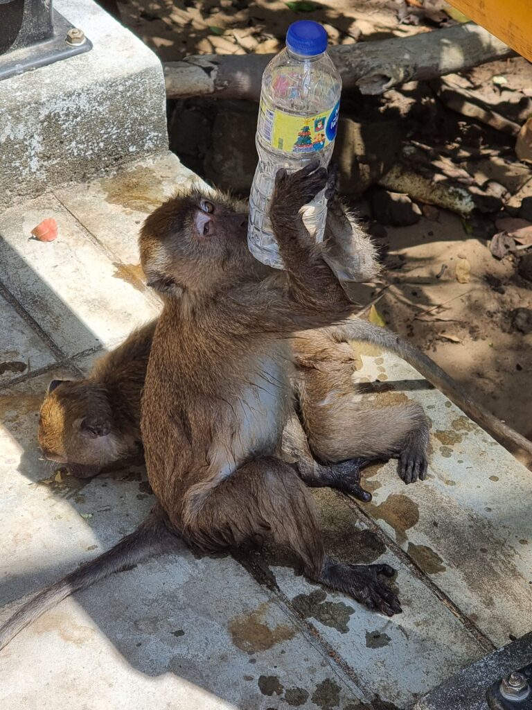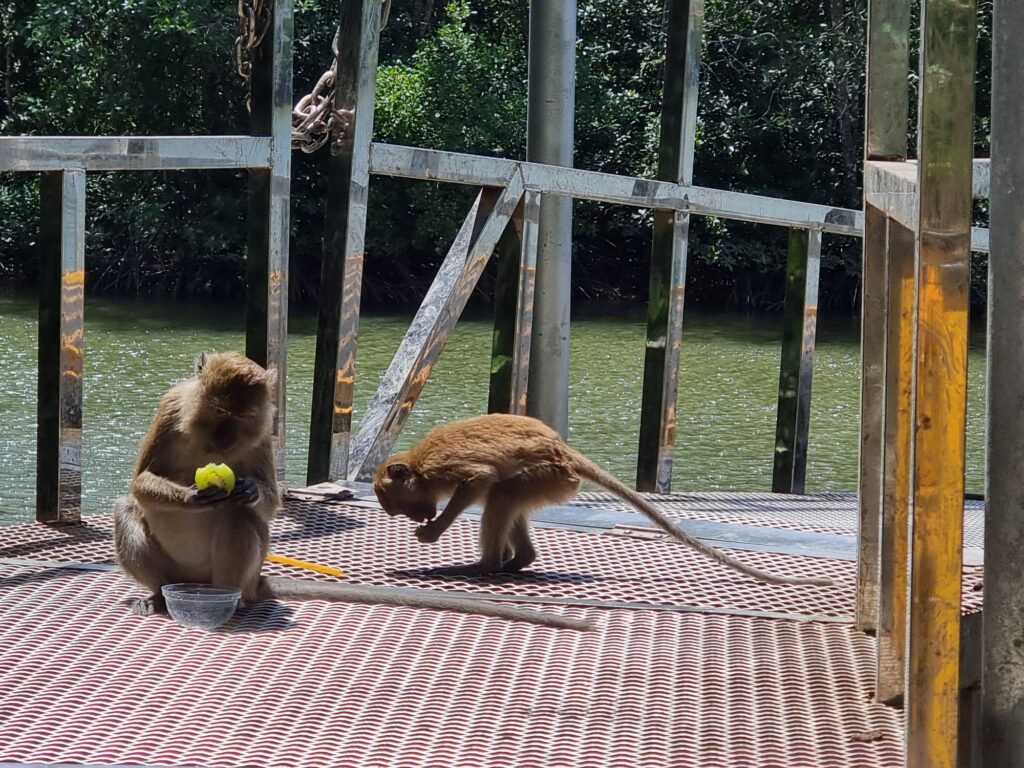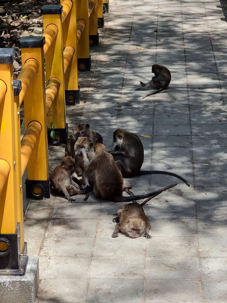 Hier liegen Affen auf der Lauer, wir hatten nichts zu Essen dabei, wurden also keines Blickes beachtet, die Nächsten waren sofort ihre Verpflegung los!