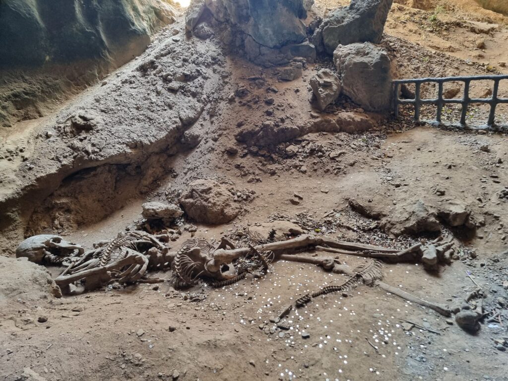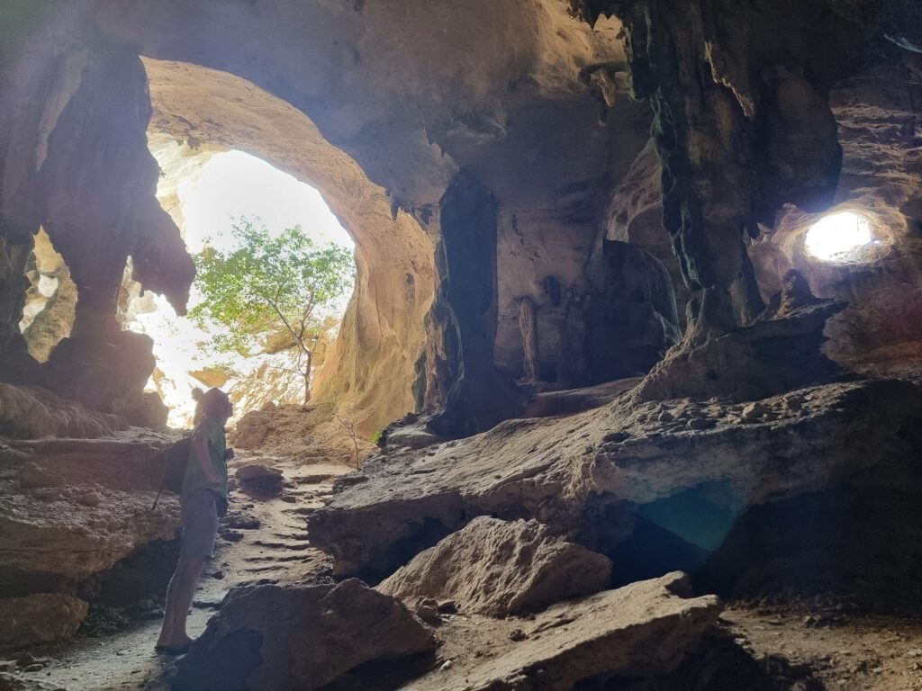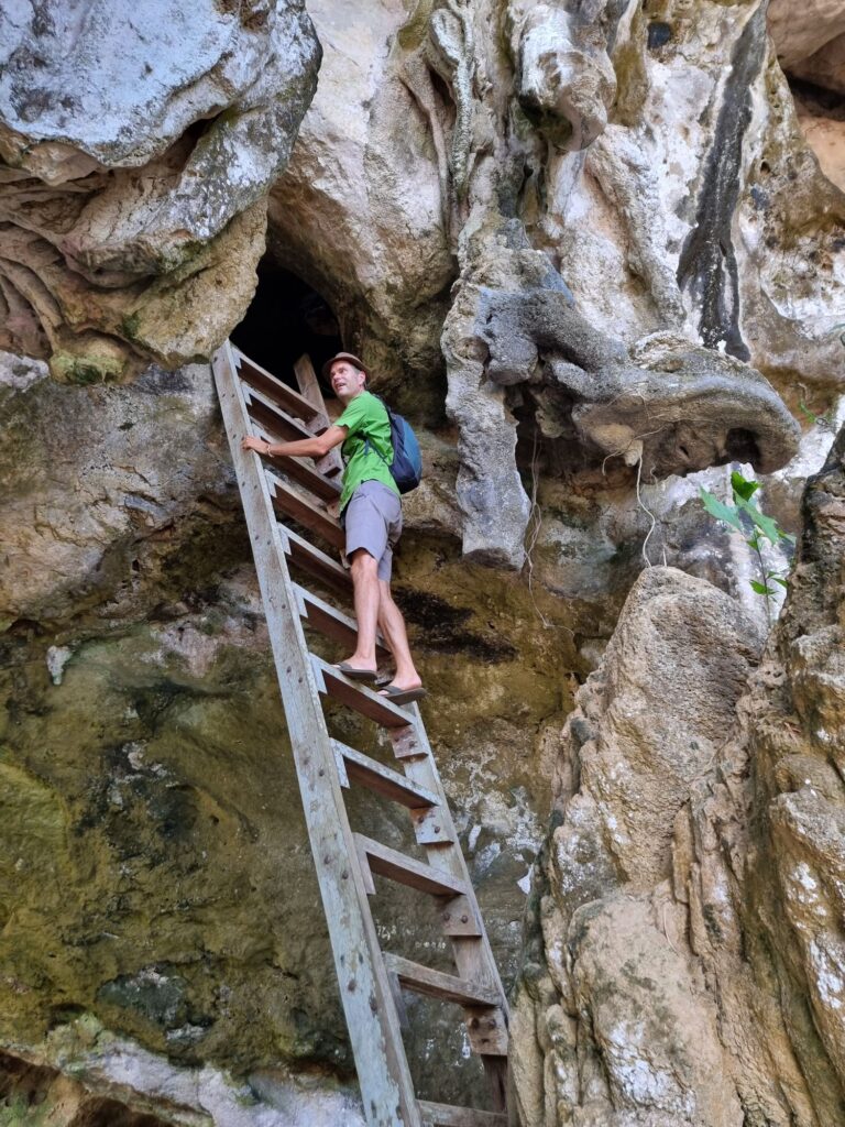 Wir kommen erst zu einer Karsthöhle, wo ein taiwanesischer Künstler das Skelett eines Riesen verbuddelt hat.