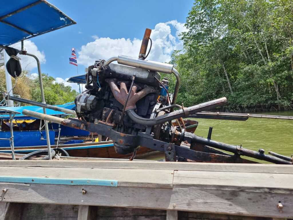 Zurück aufs “sichere” Boot! Das sieht schon putzig aus mit dem riesigen Dieselmotor und der langen Antriebswelle.