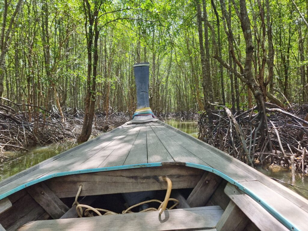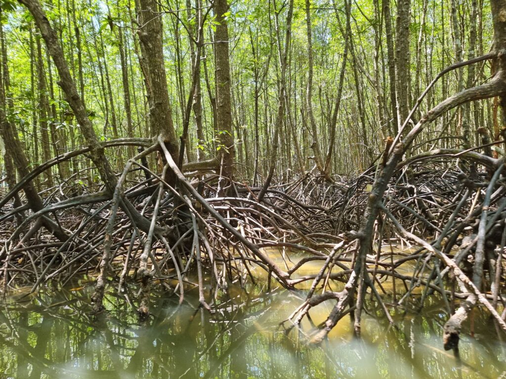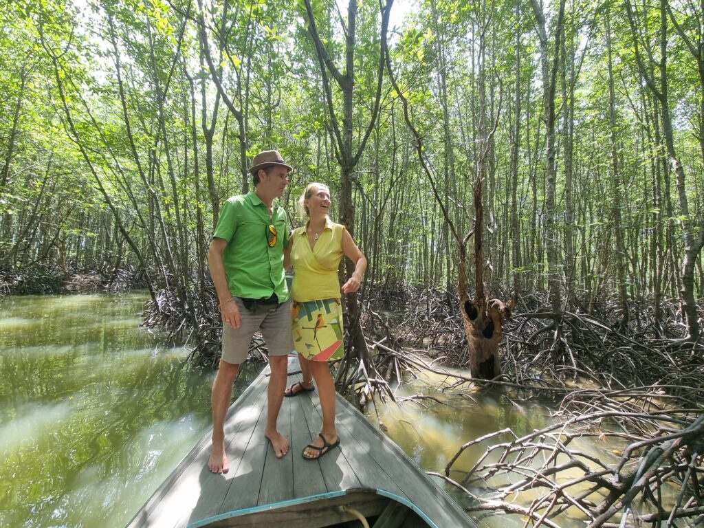 Da gerade Flut ist, können wir durch die Mangrovenwälder fahren, was richtig magisch ist.