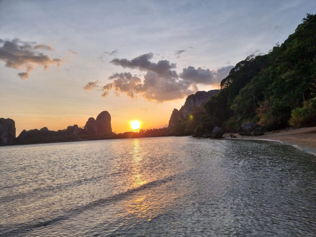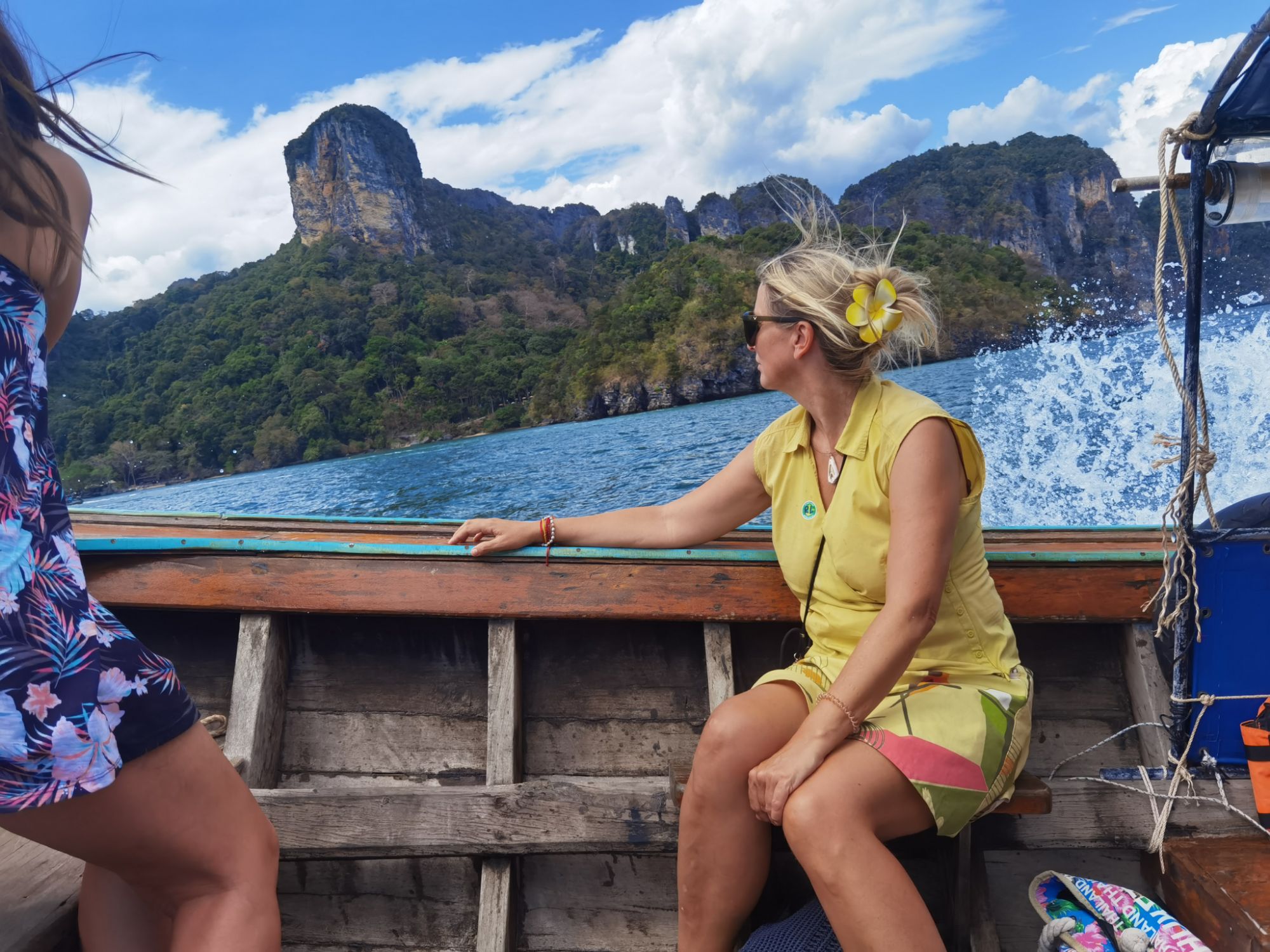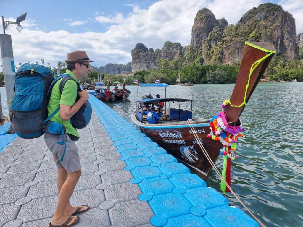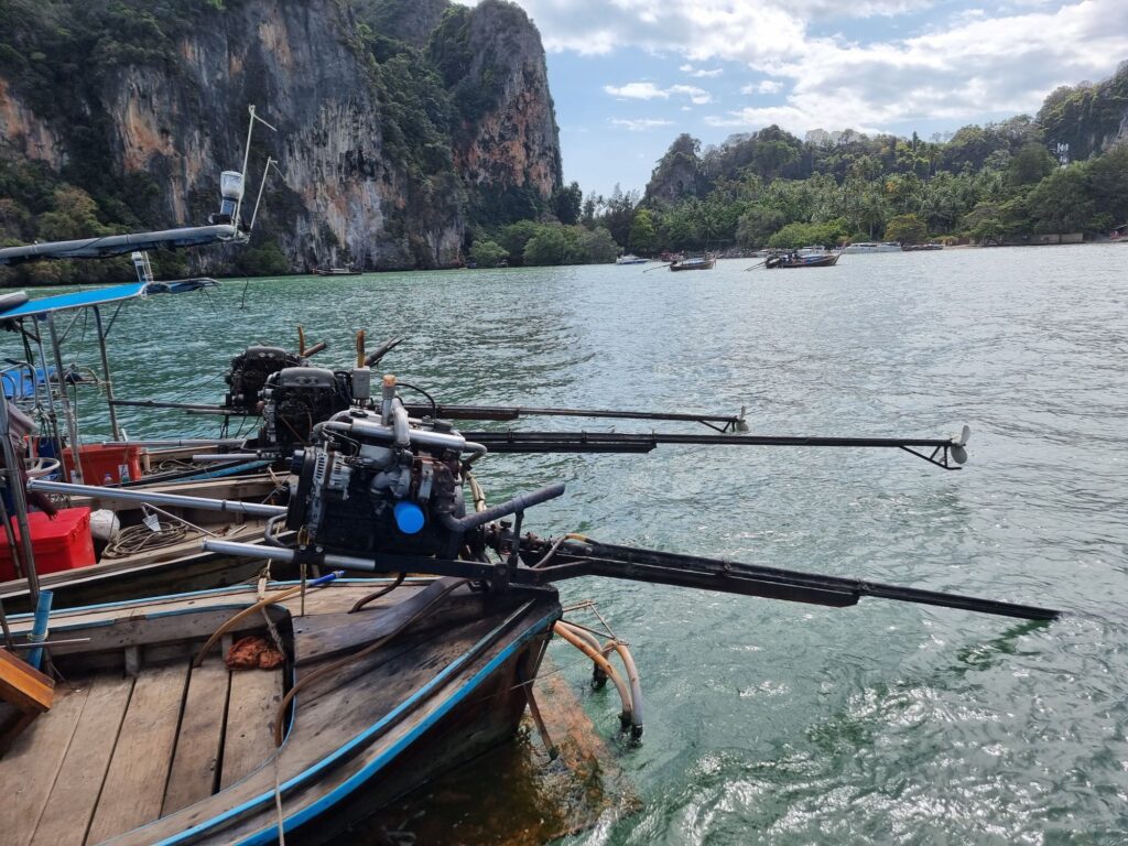 Mit einem größeren Longtailboot gehts jetzt nach Railay, dort gibt’s den Traum von Felsen, den Traum von Meer und von Strand, leider wissen das inzwischen viele Touristen.