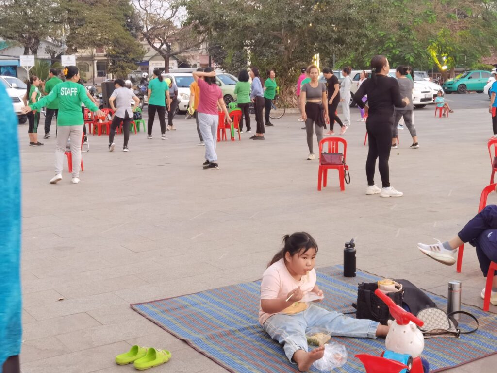 Wir drehen eine erste Runde durch die Stadt, die uns besonders sauber vorkommt, und als wir bei den Einheimischen rauskommen, die hier jeden Nachmittag öffentliches Aerobic Training machen, lassen wir es uns nicht nehmen, mitzumachen.