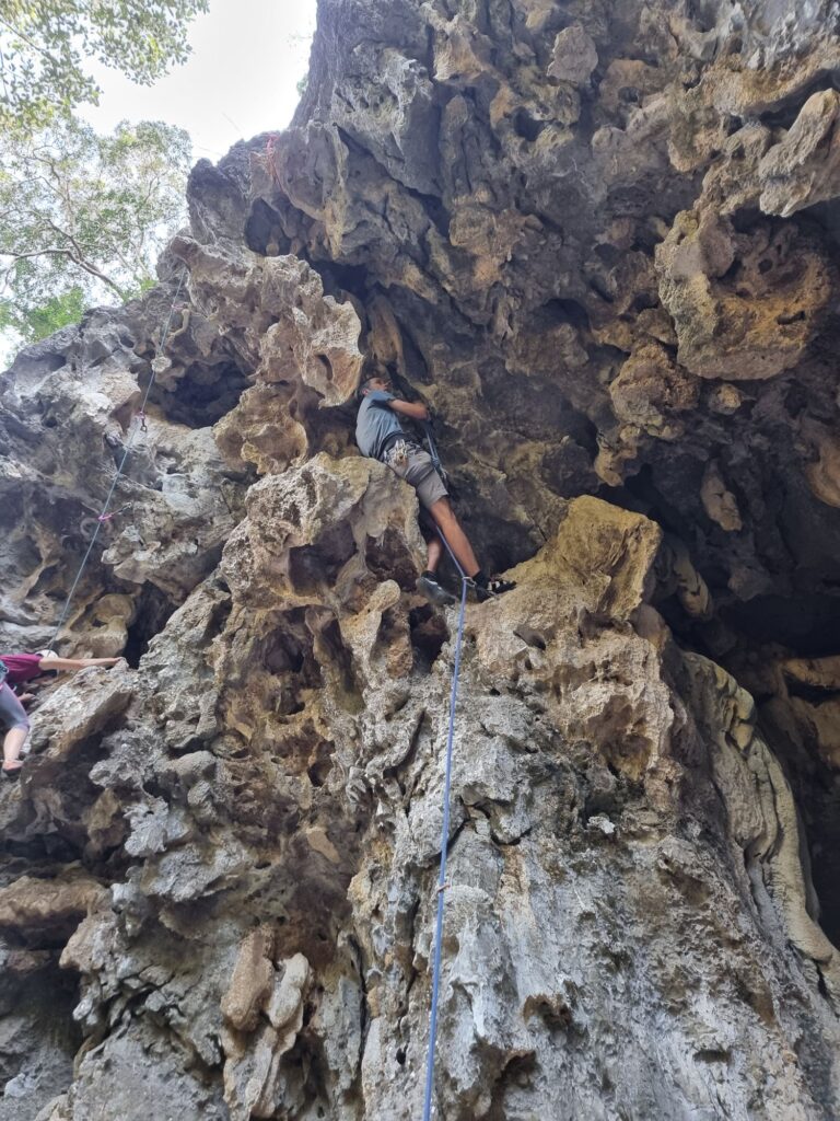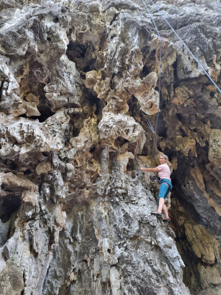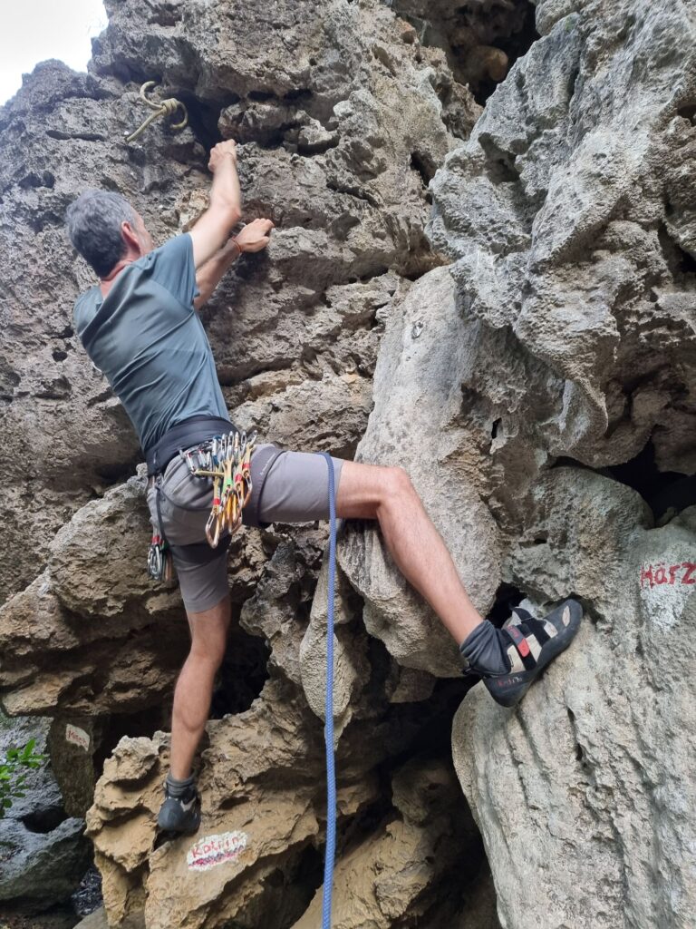 soll man weiterziehen. Heute summt unser Moped zum letzten Mal mit uns zum Green Climbers Home und wir starten im Sektor “Swiss Old Couple”. Der gefällt uns mit den herrlichen Strukturen am besten und passt ja irgendwie auch zu uns.