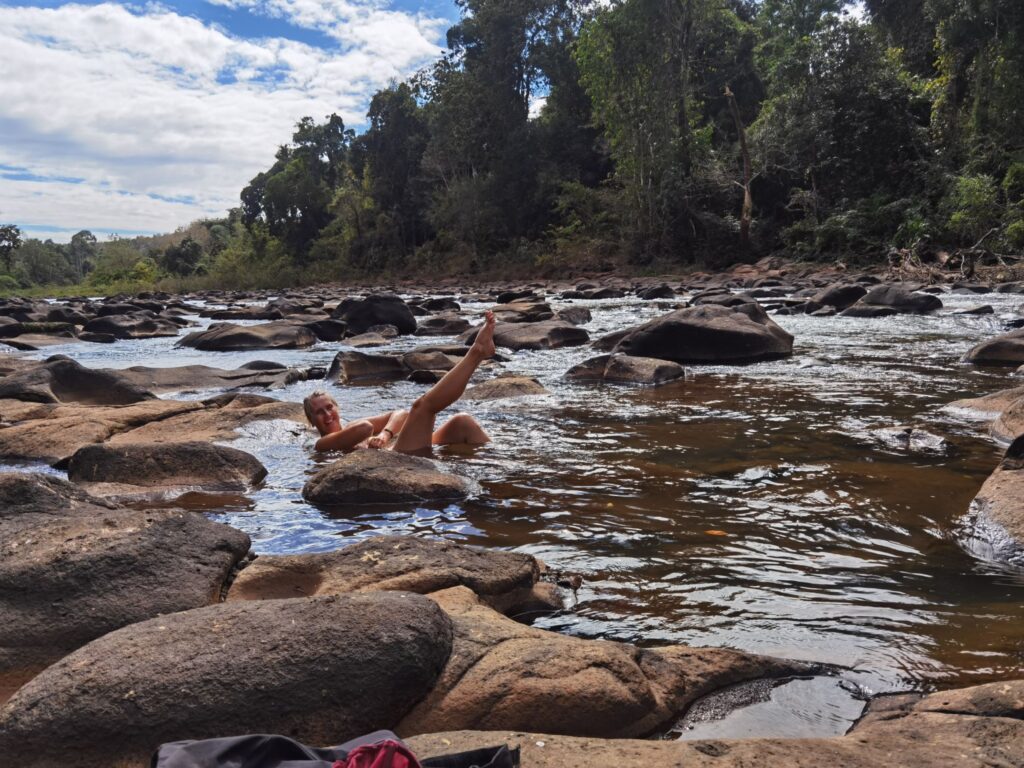 Diese Fahrt nach Pakse… nicht nur, dass wir schon um 9 abgeholt und halb 10 in einen riesigen Reisebus gesteckt wurden, der vor der Stadt am Straßenrand parkte (nichts mit Busbahnhof), der Fahrer mochte laotische Popmusik und wollte uns über die Anlage bekehren…