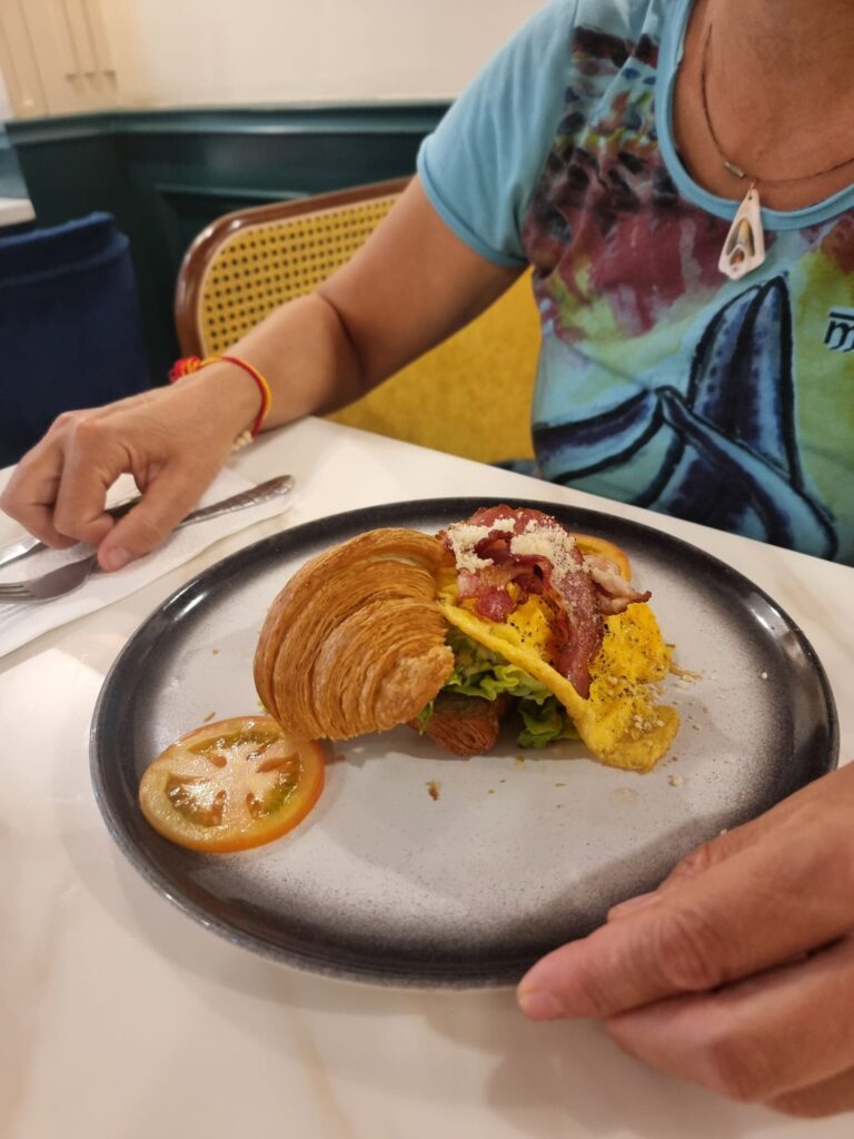 Super, jetzt ein gutes Frühstück! Das finden wir auf der anderen Straßenseite im französischen Stil.
