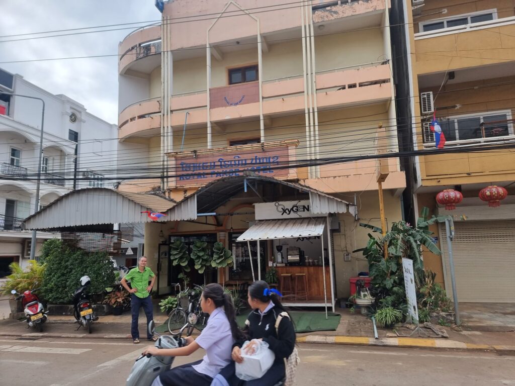 Die Fahrzeit war mit 6 bis 7 Stunden angegeben. Mit etwas Glück hätte man also so um 6 ankommen und einen schönen Start in den Tag haben können. Hatten wir aber nicht. Früh um 4(!) werden wir wachgerüttelt und auf die Straße gesetzt. Wenn man es mit Angela wirklich verscherzen will, dann holt man solche Zeiten aus dem Koffer! Was also tun? Wir stehen zufällig vor einem Hotel, drinnen schläft der Portier auf einer Bank. Wachgeklingelt gibt er an, dass nix frei wäre. Aber der Plan steht, wir brauchen ein Bett! Ich tappe durch die schlafende Stadt und probiere Türen aus. Und siehe da, beim Royal Pakse ist offen. Keiner da. Treppe hoch, in einem Zimmer steckt der Schlüssel. Kurzer Blick, Bett frisch gemacht, alles klar! Angela und das Gepäck geholt, kurz überlegt was passieren kann (eigentlich nix) und ins Bett gekuschelt!