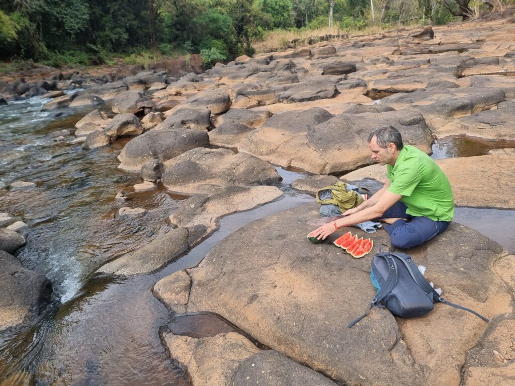Der Bus fuhr nur 30..40, aber wir wurden dennoch in jedem Schlagloch durchgeschüttelt und umgedreht. Man hätte auch mit dem Mönch über uns theologische Gespräche führen können- er war die ganze Nacht über wach. Dafür sind Meditationen also gut!